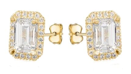 Yellow Gold Cubic Zirconia Stud Earrings.