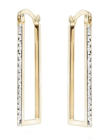 Two Tone Diamond Cut Rectangle Hoop Earrings.