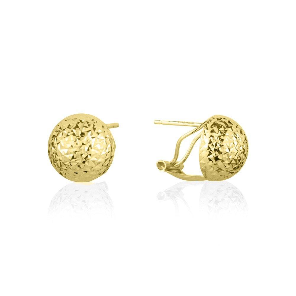 Yellow Gold Diamond Cut Button Omega Back Earrings.