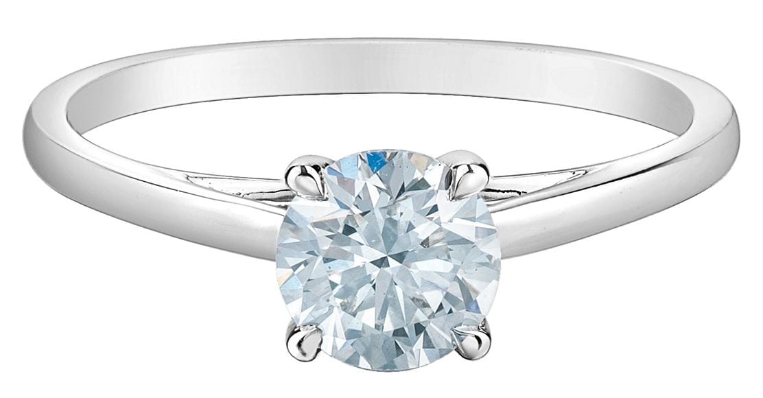 14 Karat White Gold Signature Lab Grown Diamond Solitaire Engagement Ring. 0.75 Carat Center Diamond Weight.