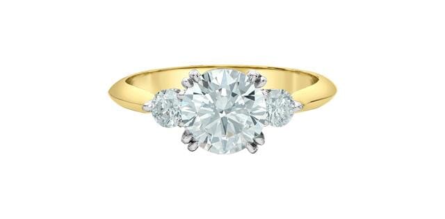 14 Karat Yellow Gold, White Gold Accent Signature Lab Grown Diamond Engagement Ring. 1.50 Carat Center Diamond 1.87 Carat Total Diamond Weight.