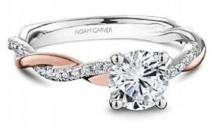 14 Karat White Gold, Rose Gold Accent Engagement Ring. Featuring A Signature Created Lab Grown Center Diamond And Earth Mined Accent Diamonds. 1.00 Carat Center Diamond 1.18 Carat Total Diamond Weight.