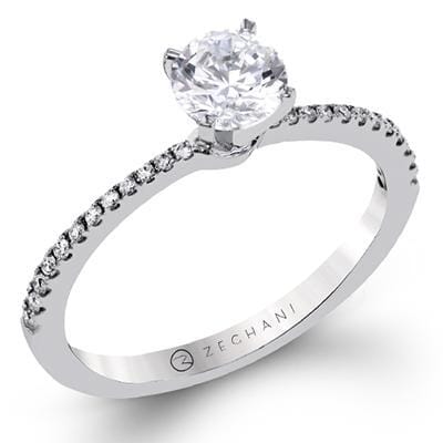 14 Karat White Gold Engagement Ring. Featuring A Signature Created Lab Grown Center Diamond And Earth Mined Accent Diamonds. 1.00 Carat Center Diamond 1.12 Carat Total Diamond Weight.