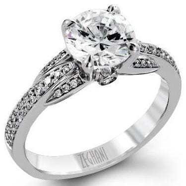 14 Karat White Gold Engagement Ring. Featuring A Signature Created Lab Grown Center Diamond And Earth Mined Accent Diamonds. 1.00 Carat Center Diamond 1.23 Carat Total Diamond Weight.