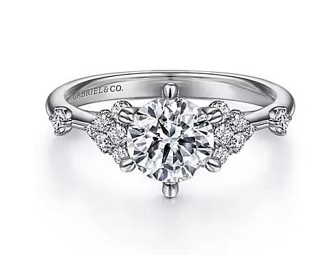 This elegant 14 Karat White Gold engagement ring from Gabriel & Co. features our Signature brilliant cut lab-grown diamond at its centre, surrounded by shimmering earth-mined accent diamonds on its shoulders. The refined design highlights the centre stone's brilliance, while the diamond accents add a touch of opulence. A perfect choice for those seeking a timeless yet luxurious piece, this ring is ideal for a cherished proposal or special occasion. Customizable to your preferences, it can be tailored to suit your desired diamond shape, size, or metal type, making it a truly personalized symbol of love.