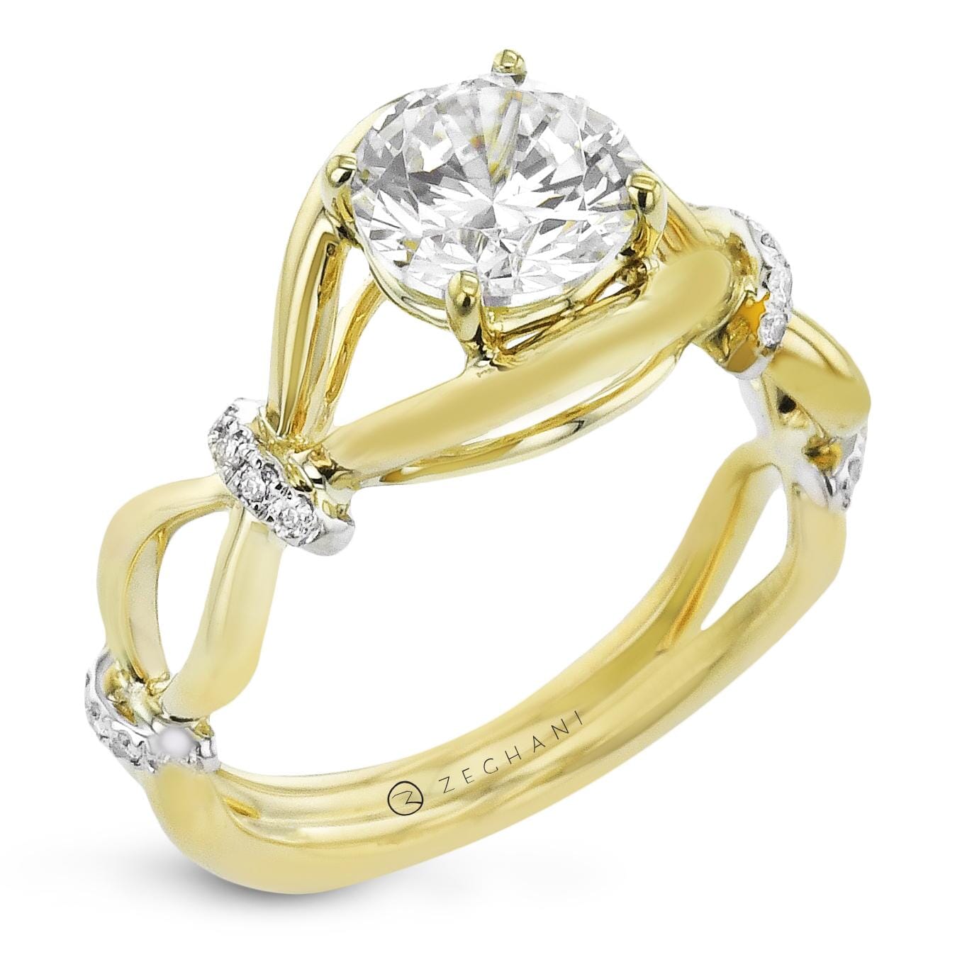 14 Karat Yellow Gold Engagement Ring. Featuring A Signature Created Lab Grown Center Diamond And Earth Mined Accent Diamonds. 2.50 Carat Center Diamond 2.60 Carat Total Diamond Weight.