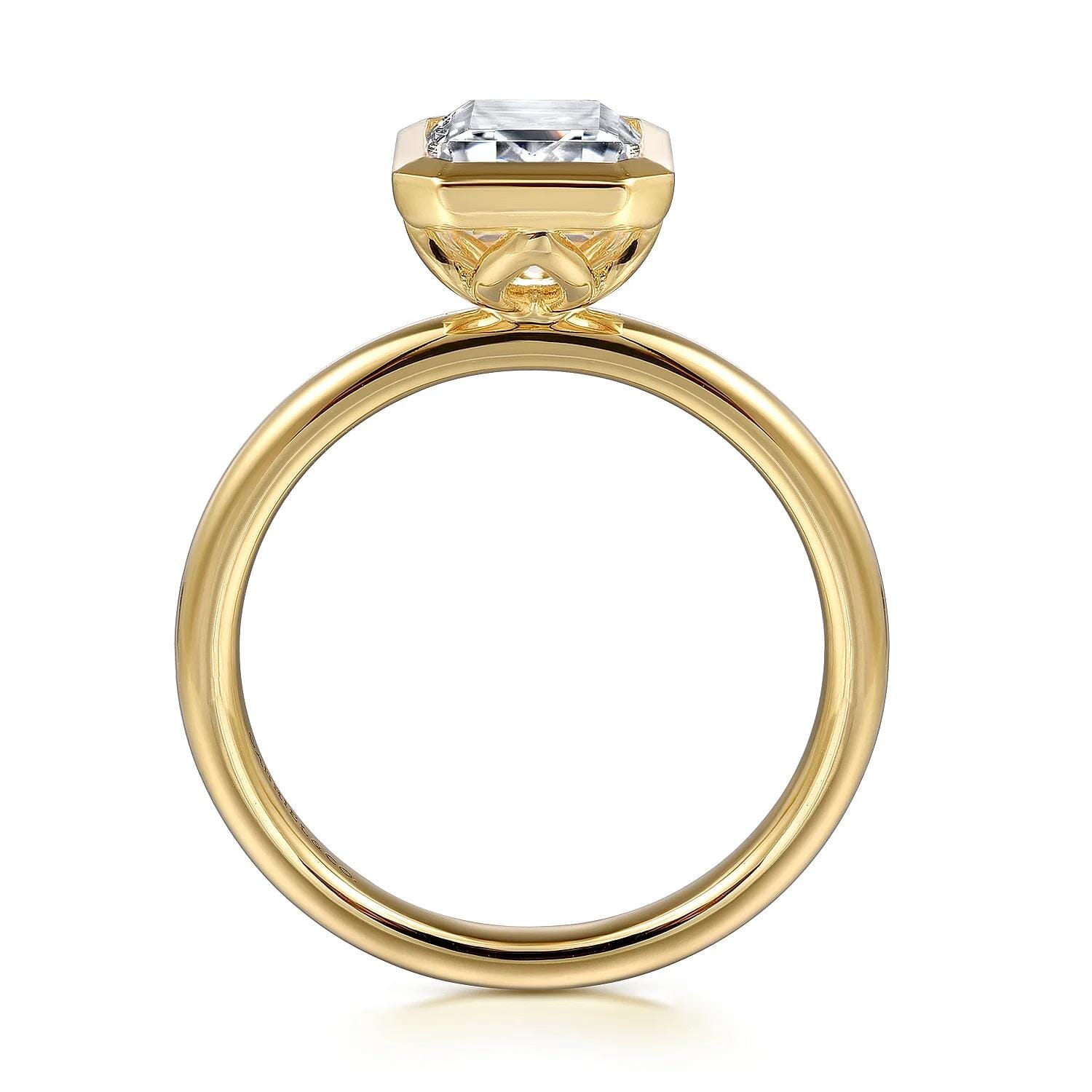 14 Karat Yellow Gold Solitaire Engagement Ring. Featuring A Signature Created Lab Grown Center Diamond. 2.00 Carat Center Diamond