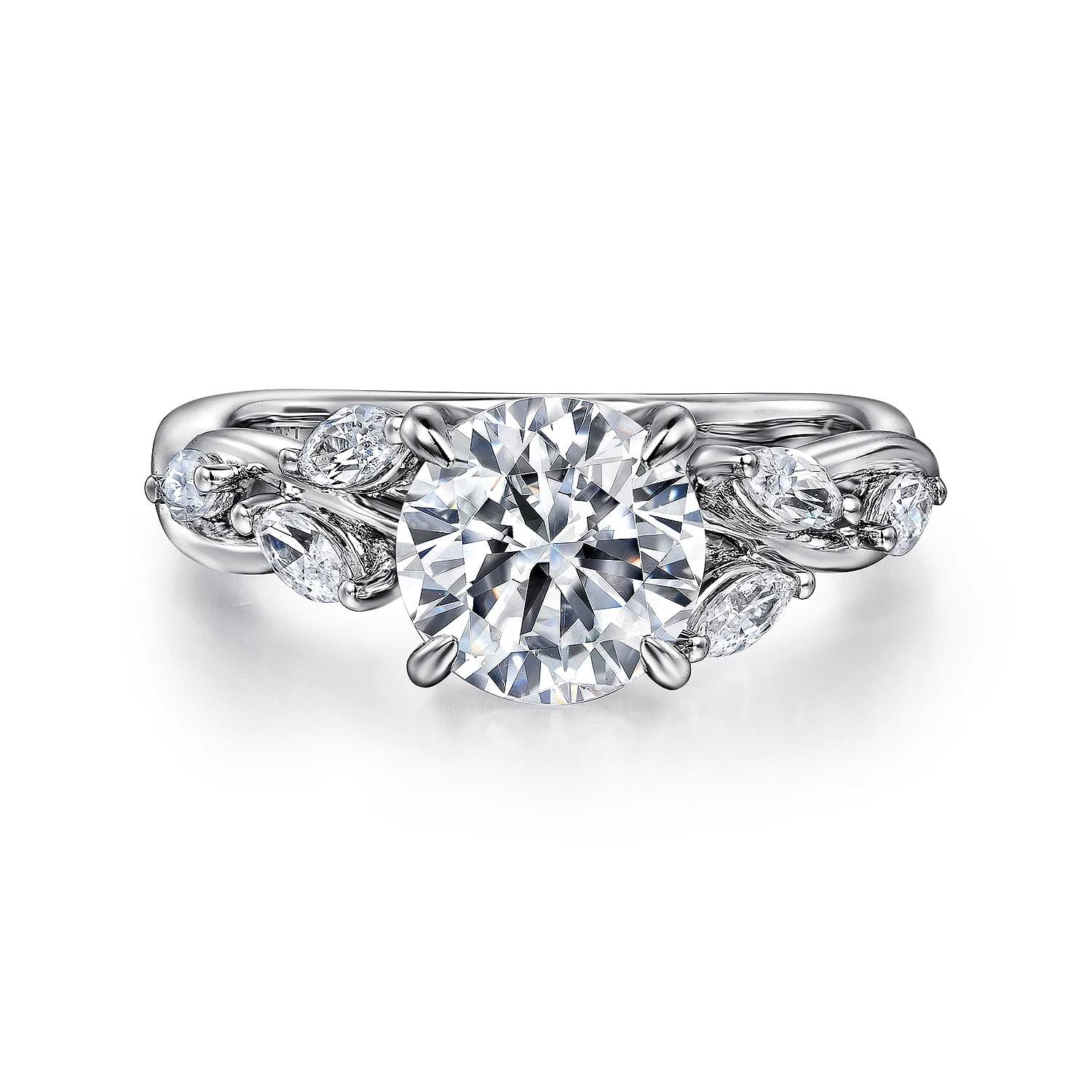 14 Karat White Gold Engagement Ring. Featuring A Signature Created Lab Grown Center Diamond And Earth Mined Accent Diamonds. 1.50 Carat Center Diamond 1.83 Carat Total Diamond Weight.