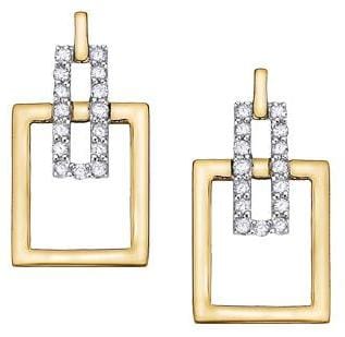 10 Karat Yellow Gold, White Gold Accent Diamond Stud Earrings. Earring 0.20 Carat Total Diamond Weight.