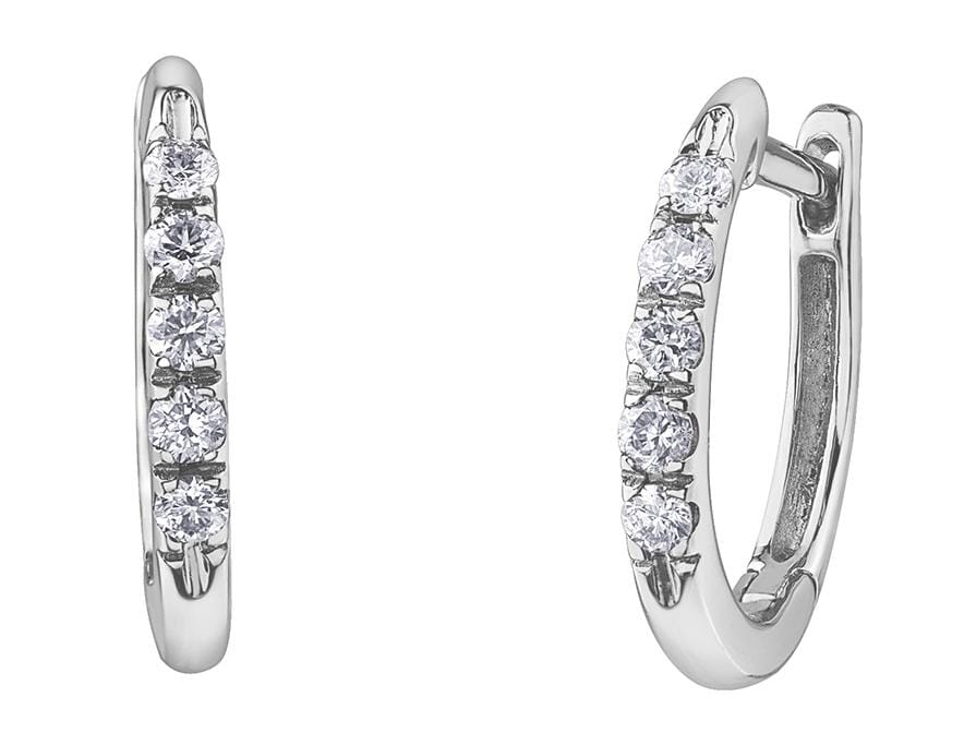 10 Karat White Gold Diamond Hoop Earrings.0.15 Carat Total Diamond Weight.