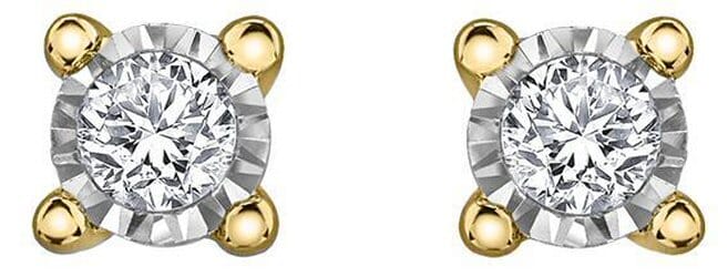 10 Karat Yellow Gold, White Gold Diamond Stud Earrings.0.04 Carat Total Diamond Weight.