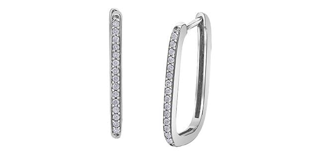 10 Karat White Gold Diamond Huggie Earrings.0.15 Carat Total Diamond Weight.
