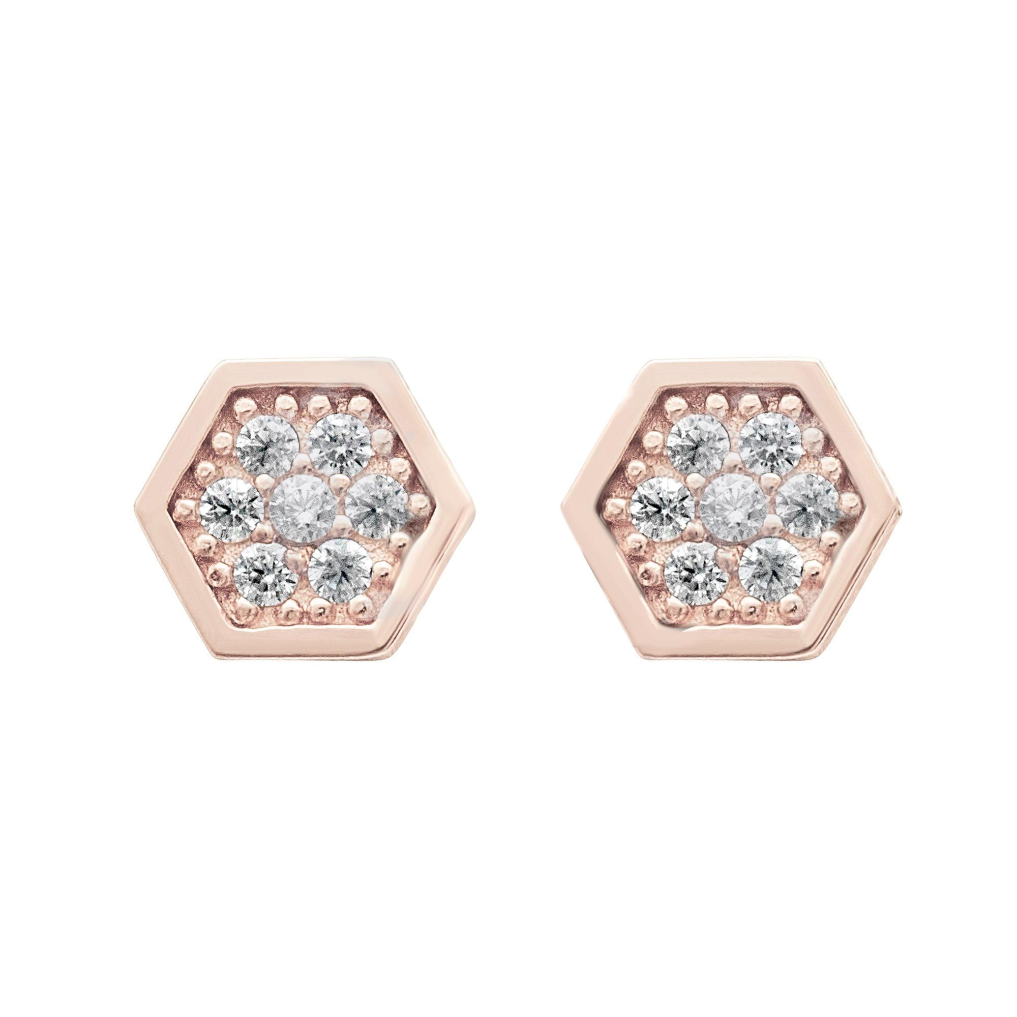 Rose Gold Cubic Zirconia Hexagon Stud Earrings.