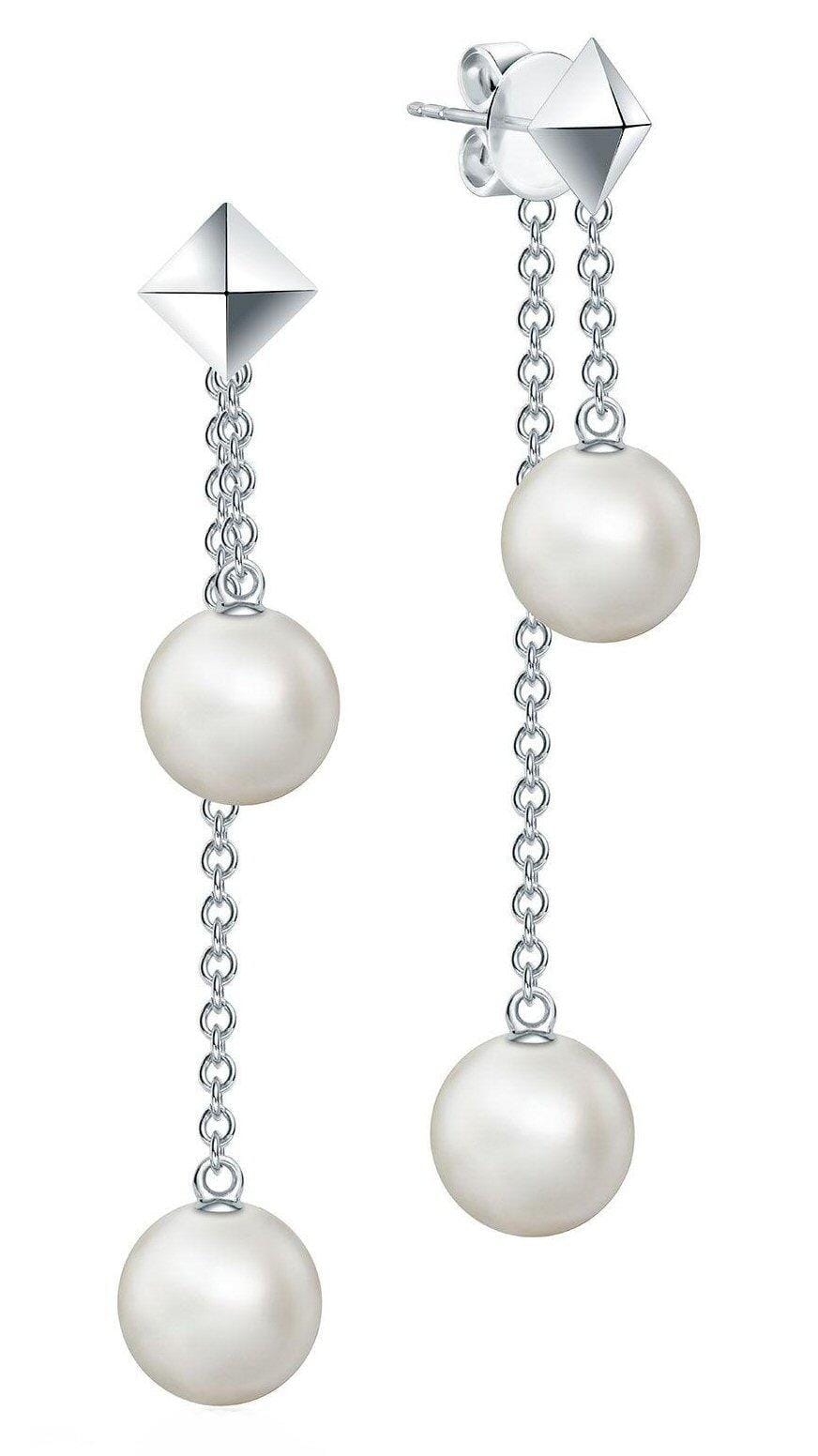 Sterling Silver Pearl Double Drop Earrings Radiating elegance and charm, these sterling silver double drop earrings feature 7mm and 8mm round freshwater pearls that gently sway from delicate silver chains. Suspended from classic silver studs, their graceful movement and minimalist design create a captivating, feminine silhouette. Inspired by the natural interplay of strength and softness, this piece reflects the serene beauty found in contrasting elements. Enchanting and refined, these earrings offer a timeless touch of sophistication.