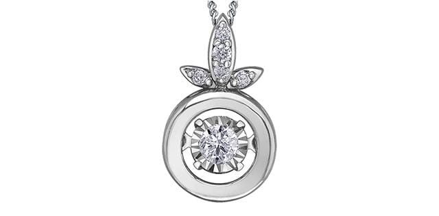 10 Karat White Gold Diamond Drop Pendant Necklace. 0.10 Carat Total Diamond Weight. This pendant comes with an 18 inch 10K white gold chain as shown. Alternate chain length, weight, or style options are available.