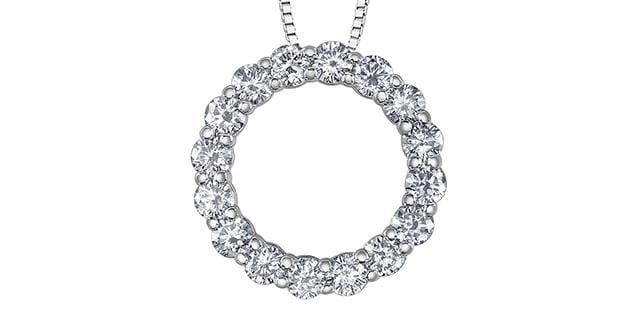 10 Karat White Gold Diamond Circle Pendant Necklace. 1.00 Carat Total Diamond Weight.