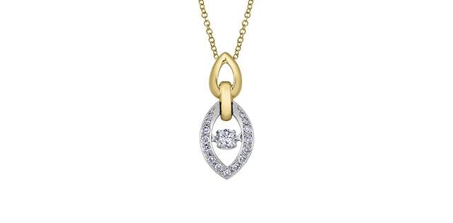 10 Karat Yellow Gold, White Gold Diamond Pulse Pendant Necklace. 0.20 Carat Total Diamond Weight. This pendant comes with an 18 inch 10K yellow gold chain as shown. Alternate chain length, weight, or style options are available.