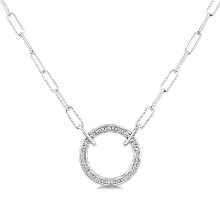 Sterling Silver Diamond Paperclip Pendant Necklace.