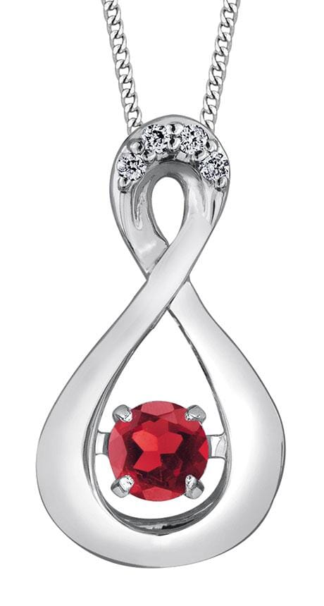 10 Karat White Gold Garnet, Diamond Pulse Pendant Necklace. 0.01 Carat Total Diamond Weight. This pendant comes with an 18 inch 10K white gold chain as shown. Alternate chain length, weight, or style options are available.