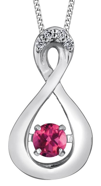 10 Karat White Gold Pink Topaz, Diamond Pulse Pendant Necklace. 0.01 Carat Total Diamond Weight. This pendant comes with an 18 inch 10K white gold chain as shown. Alternate chain length, weight, or style options are available.