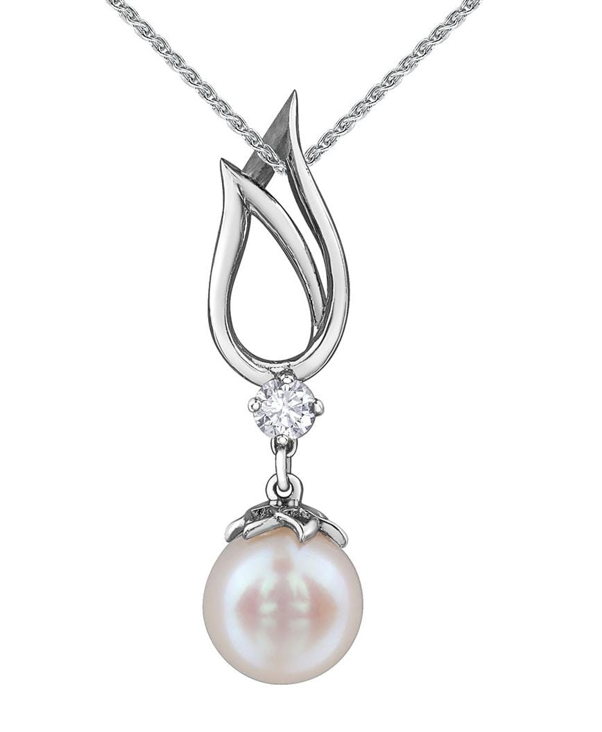 10 Karat White Gold Pearl, Canadian Diamond Drop Pendant Necklace. 0.08 Carat Total Diamond Weight. This pendant comes with an 18 inch 10K white gold chain as shown. Alternate chain length, weight, or style options are available.