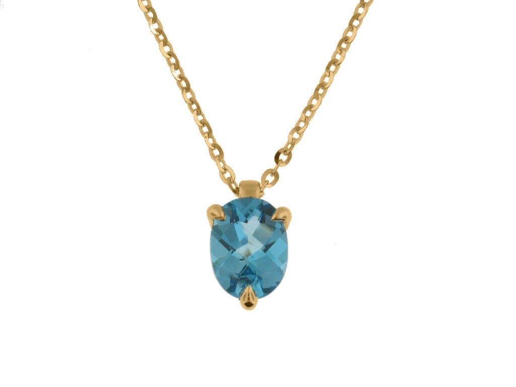 Yellow Gold Blue Topaz Solitaire Pendant Necklace.