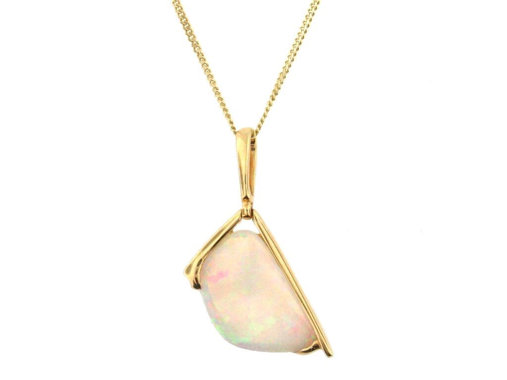 Yellow Gold Handmade Freeform Opal Drop Pendant Necklace.