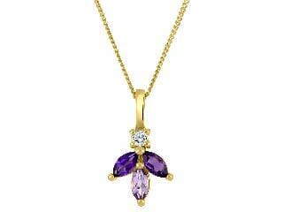 Yellow Gold Amethyst, Canadian Diamond Drop Pendant Necklace.