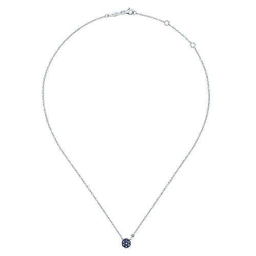 Sterling Silver Blue Sapphire Cluster with Side Bezel Diamond Pendant Necklace. 0.02 Carat Total Diamond Weight. This pendant comes with an 18 inch sterling silver chain as shown. Alternate chain length, weight, or style options are available.