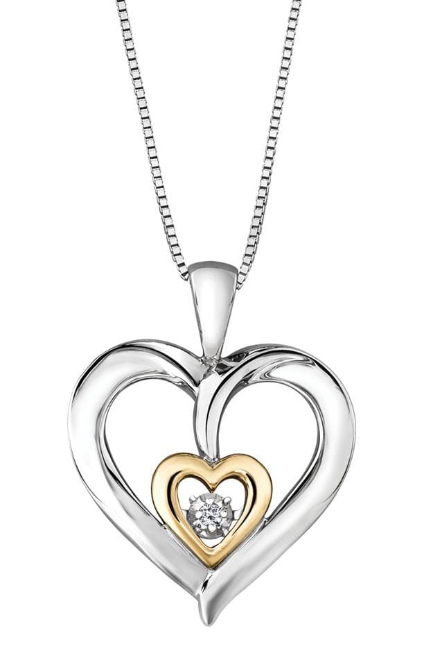 Sterling Silver Yellow Gold Accent Diamond Heart Pulse Pendant Necklace. 0.02 Carat Total Diamond Weight. This pendant comes with an 18 inch sterling silver chain as shown. Alternate chain length, weight, or style options are available.