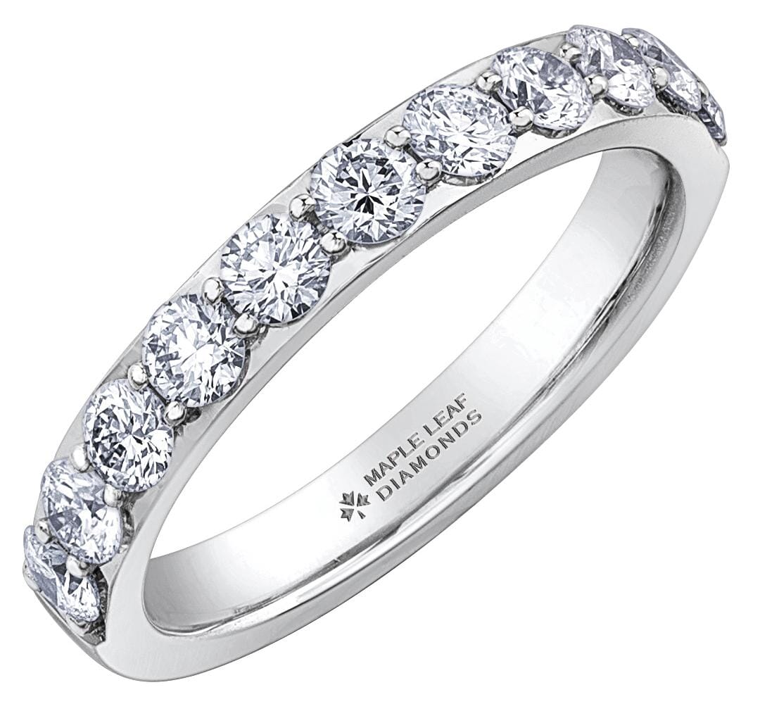 18 Karat White Gold Canadian Diamond Band. 0.77 Carat Total Diamond Weight.