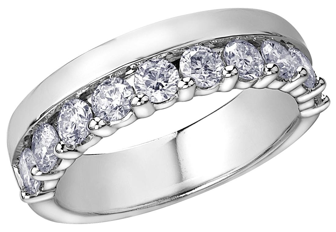 14 Karat White Gold Diamond Band. 0.75 Carat Total Diamond Weight.