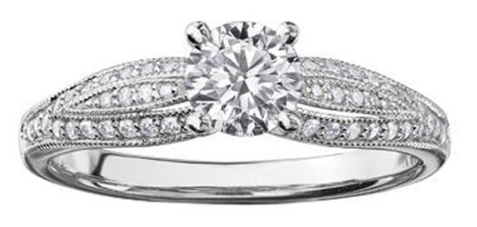 18 Karat White Gold Canadian Diamond Engagement Ring. 0.50 Carat Center Diamond 0.70 Carat Total Diamond Weight.