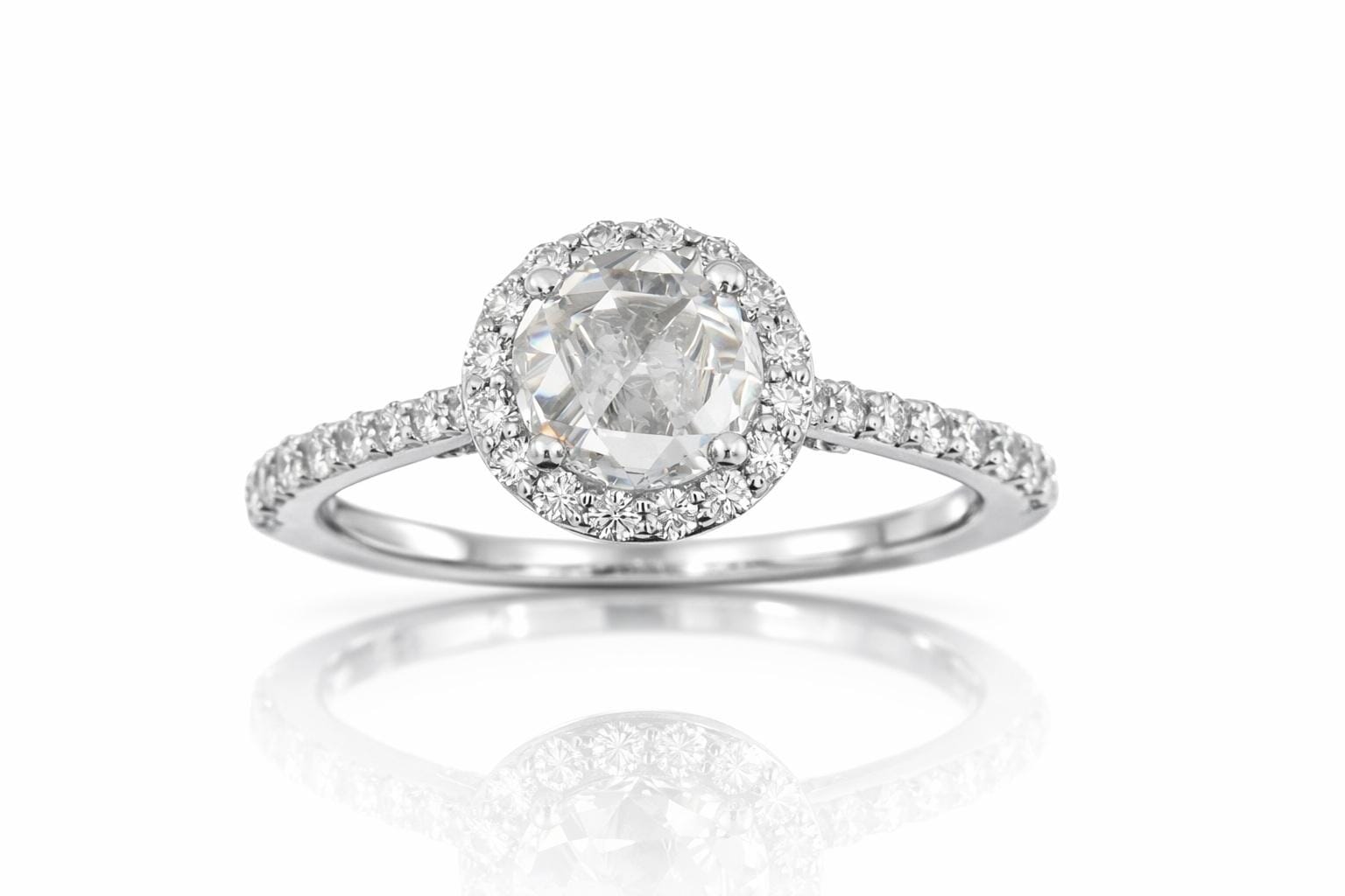 White Gold Canadian Rose Cut Diamond Engagement Ring.