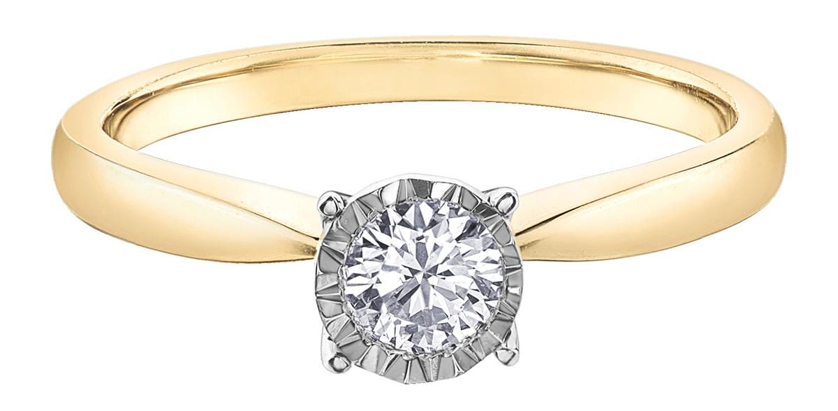 10 Karat Yellow Gold, White Gold Accent Diamond Solitaire Engagement Ring. 0.25 Carat Center Diamond