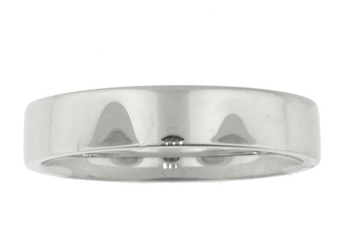 White Gold High Polish, Flat 4.0mm Wide.Wedding Band. Stock Size: 6 (Alternate sizes available)