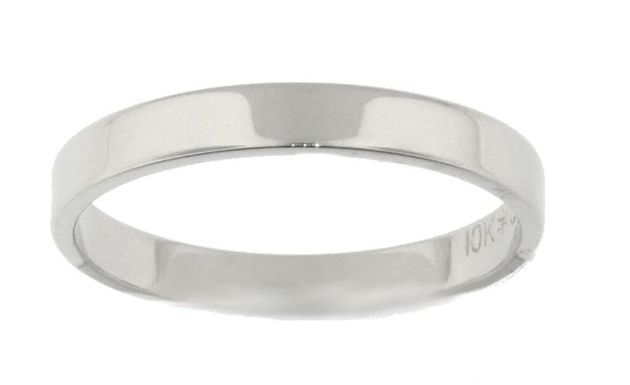 White Gold High Polish, Flat 2.5mm Wide.Wedding Band. Stock Size: 6 (Alternate sizes available)