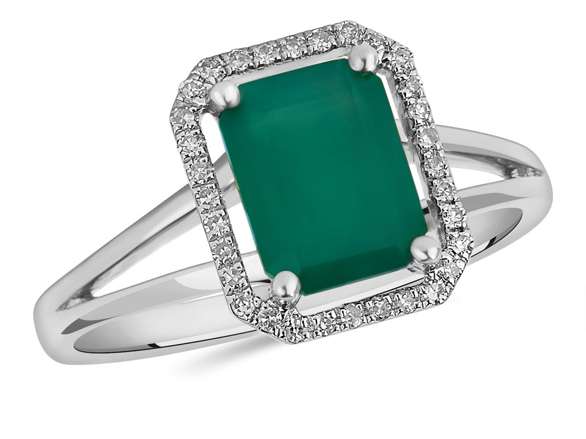 10 Karat White Gold Green Onyx, Diamond Ring. 0.10 Carat Total Diamond Weight.