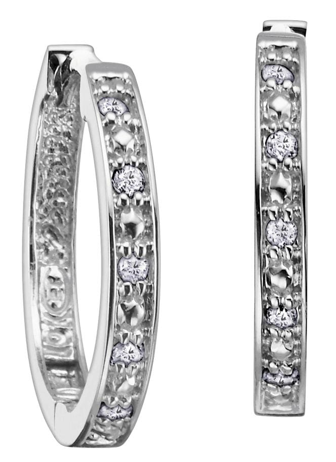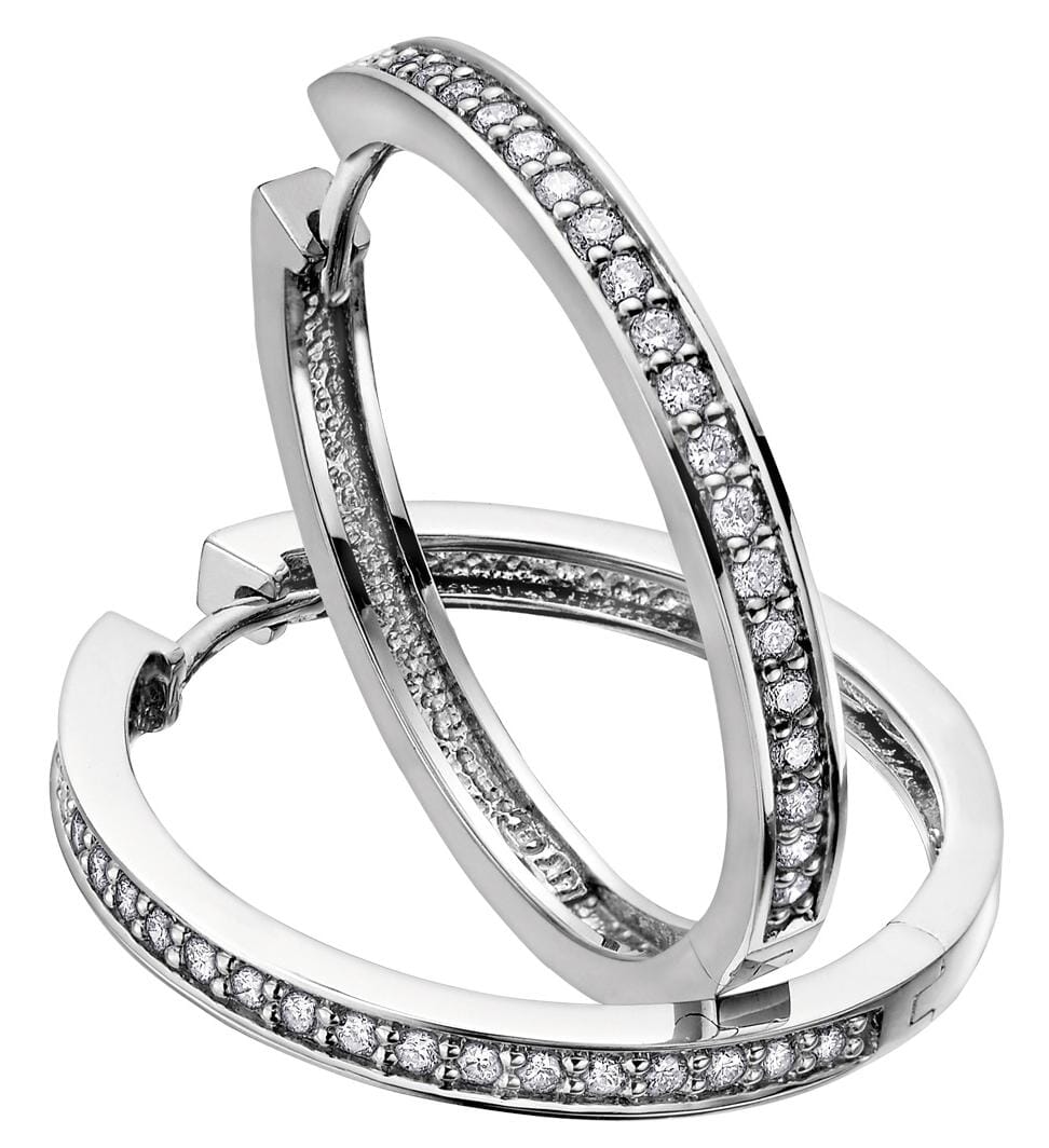 10 Karat White Gold Diamond Hoop Earrings.0.33 Carat Total Diamond Weight.