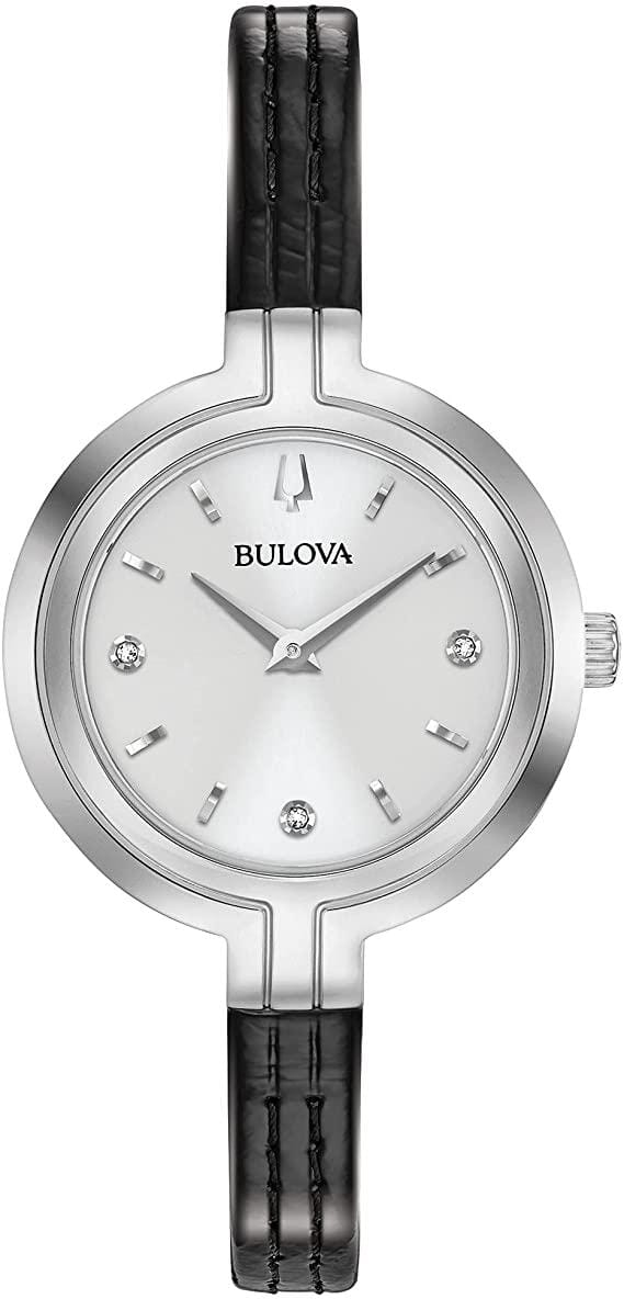 Bulova Ladies Silver Tone, Leather Strap Diamond Dial Quartz Watch -