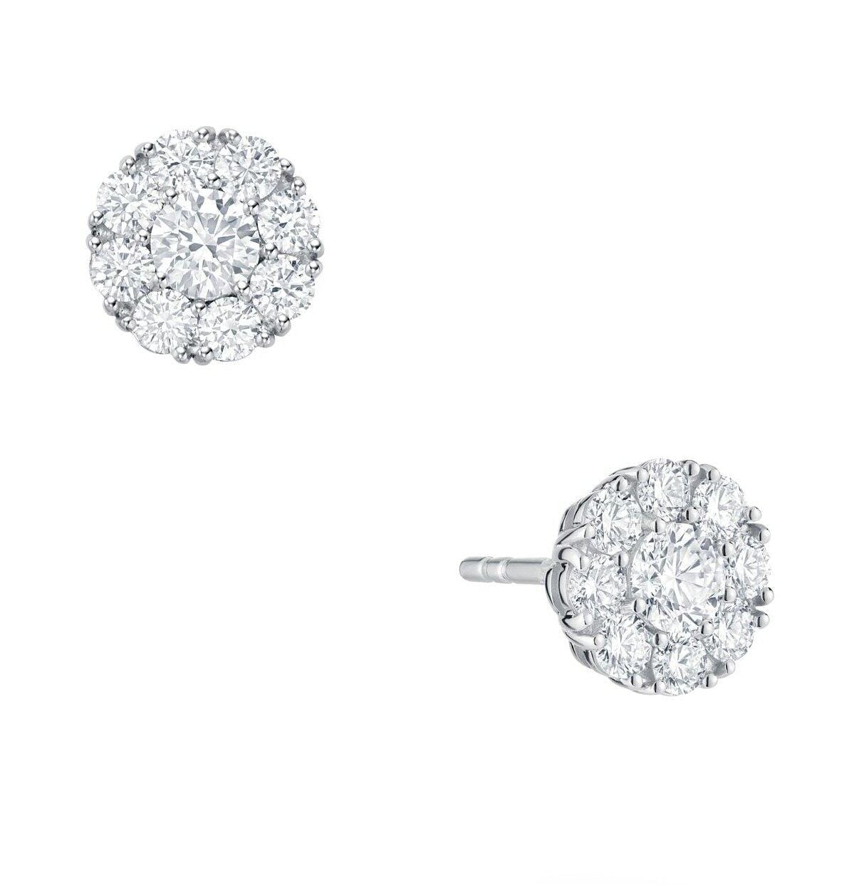 18 Karat White Gold Diamond Stud Earrings 0.26 Carat Total Diamond Weight Transformed into a lasting treasure, the fleeting beauty of a snowflake is captured in this elegant design. Crafted in 18kt white gold and adorned with a cluster of 18 round brilliant-cut diamonds totalling 0.26 carat, it evokes the delicate charm of winter’s first snowfall.This is a clearance item. If you require a specific size, we’re happy to help! Please note that some sizes will incur a sizing fee.