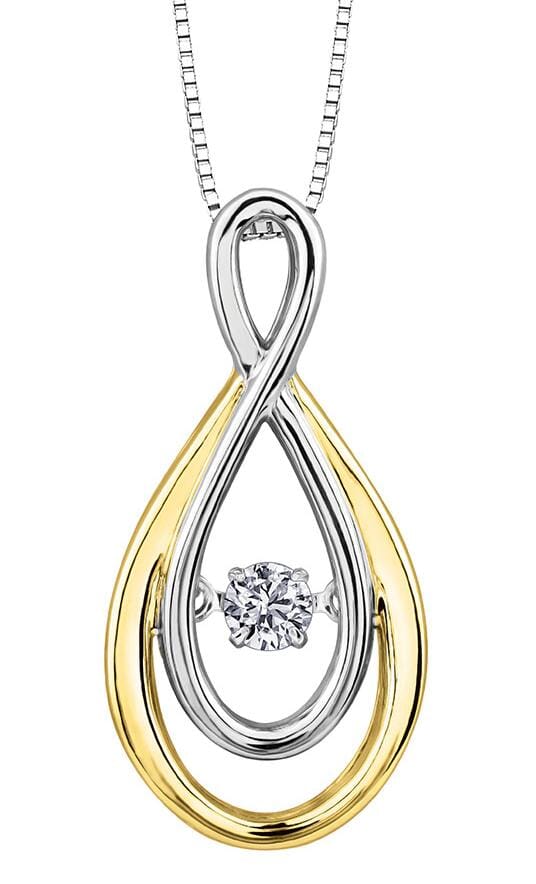 This elegant pendant necklace features a dynamic Pulse Diamond, set in 10 karat yellow gold with white gold accents. The Pulse Diamond is expertly suspended within the pendant, designed to move with every breath and heartbeat, creating a captivating sparkle that catches the light. Framed by a teardrop-shaped design, the round brilliant-cut diamond adds movement and brilliance to the piece. Measuring 22.1mm in height and 10.5mm in width, this two-tone pendant is both graceful and contemporary. Paired with a 10k yellow gold chain, it’s a sophisticated and timeless addition to your jewellery collection, perfect for any occasion.