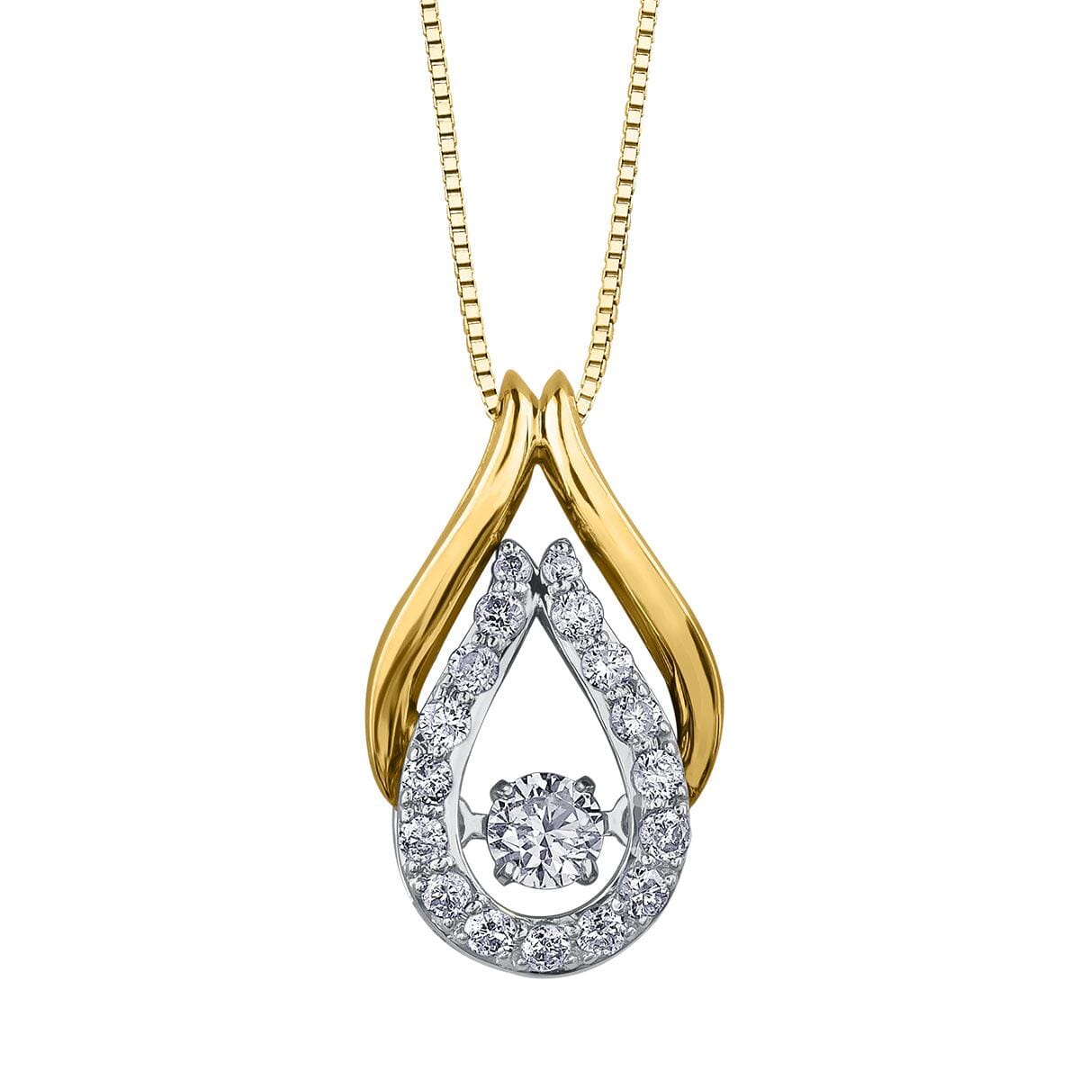 10 Karat Yellow Gold, White Gold Accent Canadian Diamond Pulse Pendant Necklace. 0.25 Carat Total Diamond Weight. Total Diamond Weight. This pendant comes with an 18 inch 10K yellow gold chain as shown. Alternate chain length, weight, or style options are available.