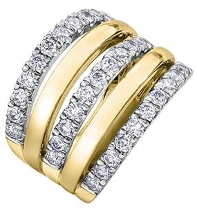 10 Karat Yellow Gold, White Gold Accent Diamond Ring. 1.50 Carat Total Diamond Weight.