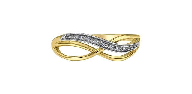 10 Karat Yellow Gold, White Gold Accent Diamond Ring. 0.03 Carat Total Diamond Weight.