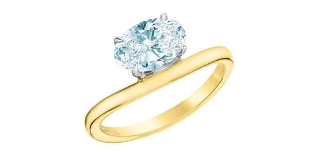 14 Karat Yellow Gold, White Gold Accent Signature Lab Grown Diamond Solitaire Engagement Ring. 1.50 Carat Center Diamond Weight.