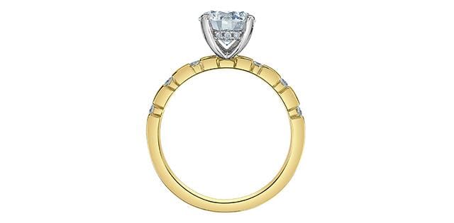 14 Karat Yellow Gold, White Gold Accent Signature Lab Grown Center Diamond With Earth Mined Accent Diamonds Engagement Ring. 1.00 Carat Center Diamond 1.15 Carat Total Diamond Weight.