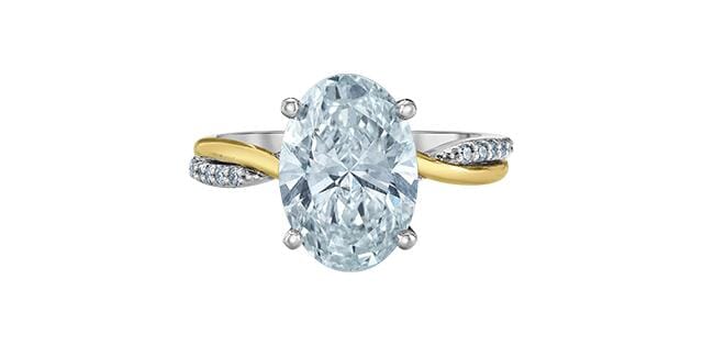 14 Karat White Gold, Yellow Gold Accent Signature Lab Grown Diamond Engagement Ring. 3.00 Carat Center Diamond 3.10 Carat Total Diamond Weight.