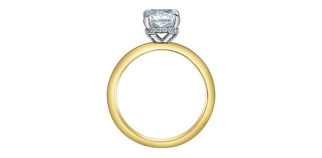 14 Karat Yellow Gold, White Gold Accent Signature Lab Grown Diamond Engagement Ring. 2.07 Carat Center Diamond 2.12 Carat Total Diamond Weight.