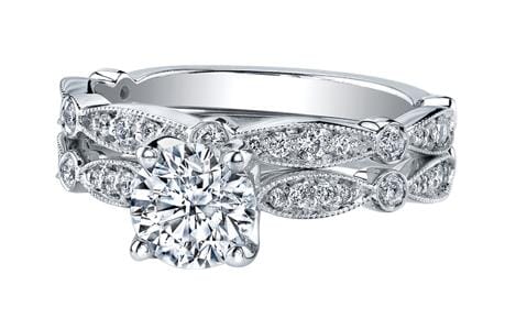 18 Karat White Gold Canadian Diamond Engagement Ring. 0.50 Center 0.70 Total Diamond Weight.